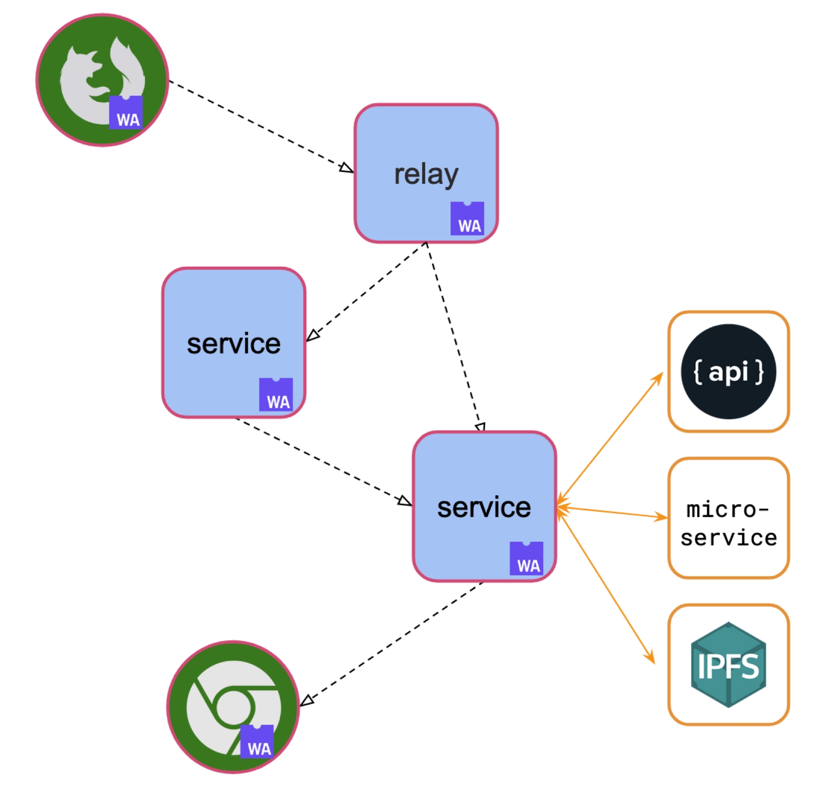 Permissionless peer-to-peer networks have a lot to offer to developers and solution architects such as decentralization, improved control over data, flattened request-response data models and zero trust security at the application and service level. Of course, these capabilities and benefits don't just arise from putting libp2p to work. Instead, a peer-to-peer overlay is required. The Fluence protocol provides such an overlay enabling a powerful distributed data routing and management protocol allowing developers to implement modern and secure Web3 solutions. See Figure 1 for a stylized representation decentralized applications development by programming the composition of services distributed across a peer-to-peer network.